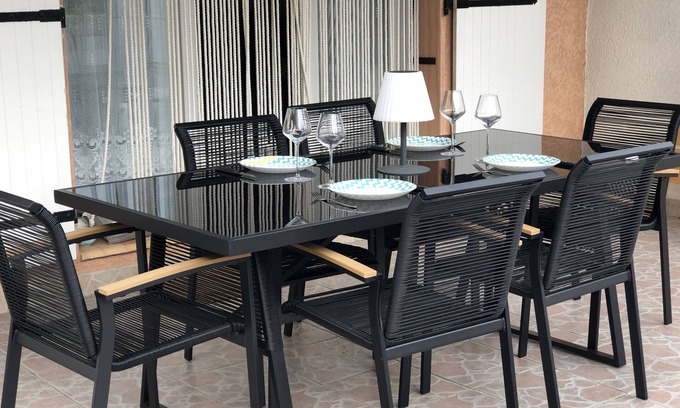 Detached house on Vias beach, comfortable (dishwasher, air conditioning, barbecue, baby kit, 2bikes, mosquito nets, free wifi, washing machine). 2 parking spaces. 2 pretty terraces. A little piece of paradise for a successful holiday. Equipped for 6pers. Close to all shops (5min walk) while being away, for your peace. 5min walk to the nearest beach. A decoration and a studied equipment to be pleasant to you