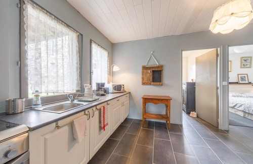 Pretty little house composed of a veranda dining room / stay, bathed in the greenery. Three small steps lead you to the fully equipped kitchen (gas cooker, oven, microwave oven, dishwasher, fridge / freezer), to the first bathroom (walk-in shower, washbasin, WC) The first two rooms: one with two beds in 90 and the other with a double bed in 160.