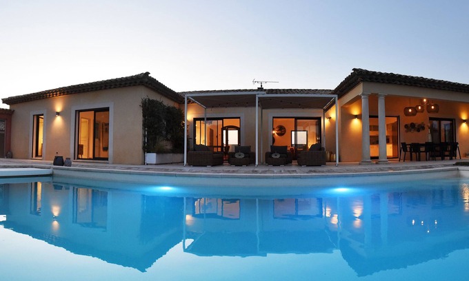 The villa has been entirely designed for your well-being and your relaxation with its chromotherapy swimming pool, its sauna (open in winter), its Italian natural stone fountain and its absolutely charming 2,200 m² garden where you can stroll for a morning meditation. or a starry walk under the olive trees.