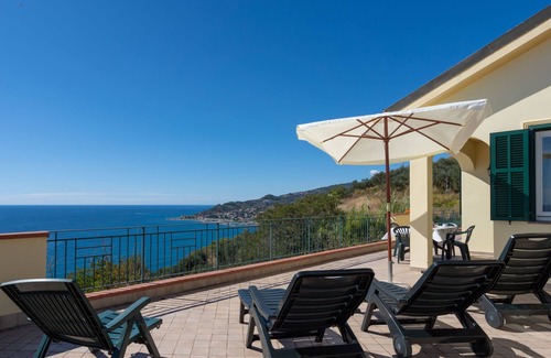 "Primavera (PGI130)", 2-room apartment 85 m2 on 1st floor, south facing position. Spacious, tasteful furnishings: large living/sleeping room with 1 double sofabed (140 cm), dining table and satellite TV. Exit to the terrace. Dining room. Exit to the terrace. 1 room with (160 cm), 1 double bed. Exit to the terrace. Kitchen (4 hot plates, oven, dishwasher, toaster, kettle, microwave, freezer, electric coffee machine) with dining table. Shower/WC. Gas heating. Heating available only from 01.10. to 01.05. Large terrace 100 m2. Terrace furniture, barbecue (portable), deck chairs. Marvellous panoramic view of the sea and the bay. Facilities: washing machine, children's high chair, baby cot. Internet (WiFi, free). Please note: non-smoking house. Private entrance, smoke alarm, fire extinguisher. IT008031C2J7TSUYF9