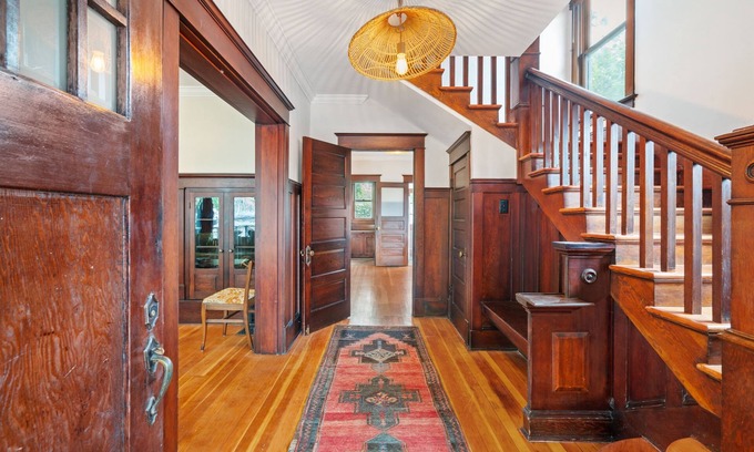 This beautiful downtown home is thoughtfully updated while still preserving its original charm, this spacious residence offers tall ceilings, rich wood details, and timeless finishes.