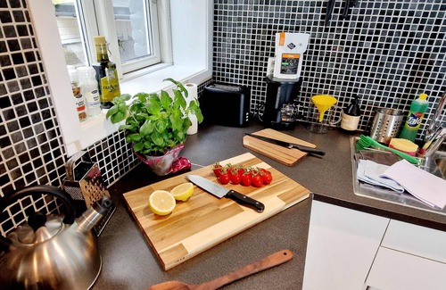 Stay in the heart of Bergen with restaurants, theaters, cinemas, and shopping just outside your door. This centrally located ground floor apartment is perfect for exploring the city’s best attractions, all within walking distance. Relax in a luxurious king-sized bed after a day of adventures. The apartment features modern amenities, a fully equipped kitchen, and a cozy living area. Whether for business or leisure, experience Bergen’s vibrant charm with comfort and convenience.