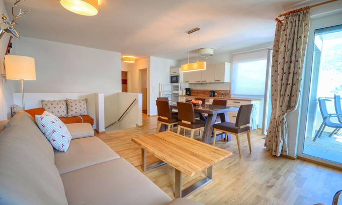 This apartment is furnished with contemporary Austrian fittings and boasts a large, wrap-around balcony facing south-east, as well as a cozy little garden.