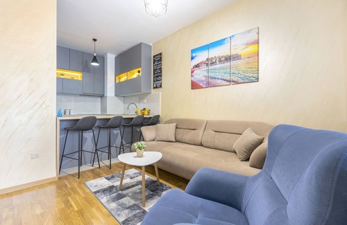 Princess Milena Apartment is a new apartment in the modern contemporary part of Becici also known as New Becici.The apartment is located in the Bujkovic Building next to the roundabout (the building where the IDEA supermarket is).Twisted between the sea and the greenery of pine and palm trees, Princess Milena Apartment is everything you need for a beautiful and peaceful vaccation.