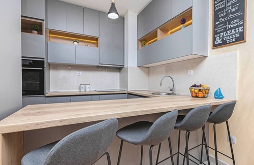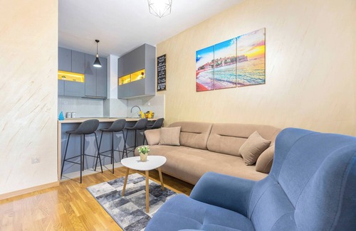 Discover Apartment Milena, a modern 2 bedroom apartment in Budva, just 150 meters from the Becici beach. Accommodating up to 5 adults or 6 guests, it features stunning sea views, a fully equipped kitchen, and air conditioning in every room. Enjoy amenities like free Wi-Fi, cable TV, a smart TV, and convenient self-check-in/out. Free parking is available, with an optional garage for an additional fee. Experience comfort and convenience in the heart of Becici.Book now for an unforgettable getaway!