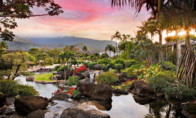 This Resort is a tropical oasis that overlooks the stunning Hanalei Bay on the north shore of the “garden island,” Kauai. Vacationers are humbled by breathtaking sunsets, majestic mountains, and the sparkling Pacific Ocean. Take advantage of an array of amenities, such as swimming pools, tennis courts, a hot tub, a restaurant, and a lounge. Unique shopping and dining can be found in Kilauea Town, and local farmers' markets on the North Shore. Golfers will have no shortage of courses from which to tee off, the crown jewel among them the prestigious Princeville Makai Golf Club.