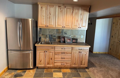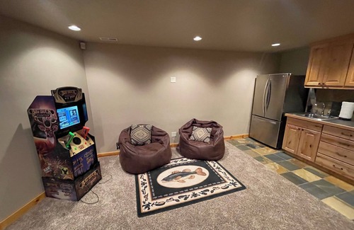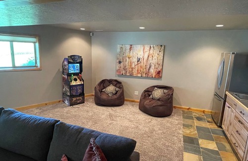 Your cozy getaway awaits in Garden City at this delightful cabin. With 5 bedrooms, including 4 queen beds, 2 bunk beds, and 1 king bed, there's plenty of space for all your guests. The cabin features 3 bathrooms, complete with a bathtub, jetted bathtub, and 3 showers. Tankless water heater means unlimited hot water for everyone! You'll find all the comforts of home here, from AC and heating to a hair dryer and full laundry room. Stay connected with Starlink WiFi throughout your stay.