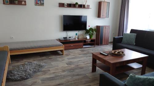 Privát 347 offers accommodations in Broumov, 19 miles from Polanica Zdroj Train Station and 20 miles from Kudowa Zdrój Train Station. This property offers a private pool, free Wifi, and free private parking. The accommodation features a 24-hour front desk, a shared kitchen, and organizing tours for guests. Featuring a terrace and pool views, the spacious apartment includes 2 bedrooms, a living room, satellite flat-screen TV, an equipped kitchen, and 1 bathroom with a shower. Towels and bed linen are available in the apartment. The property has an outdoor dining area. Guests at the apartment will be able to enjoy activities in and around Broumov, like hiking. Outdoor play equipment is also available at Privát 347, while guests can also relax in the garden. Errant Rocks is 22 miles from the accommodation, while Książ Castle is 25 miles from the property.
