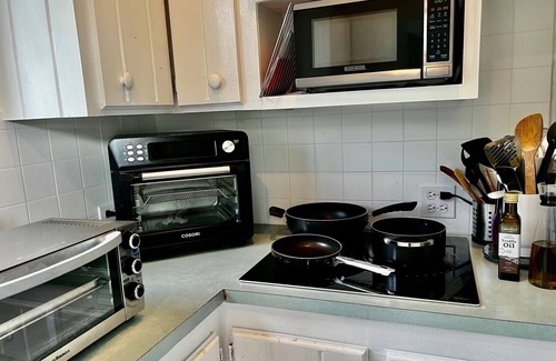 Trident Cottage is fully air conditioned to make your stay as comfortable as possible. The cottage features a fully equipped kitchen, including an oversized refrigerator and freezer.
