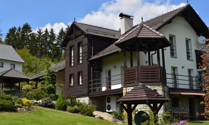 Privat Pod Skalkou offers accommodations in Velké Losiny, 30 miles from Bouzov Castle and 25 miles from Museum of Olomouc Cheese. A 13-minute walk from Museum of Paper Velké Losiny and 16 miles from Praděd, the property features a garden and barbecue facilities. There's a picnic area and guests can use free Wifi and free private parking. Featuring a terrace and mountain views, the guest house includes 1 bedroom, a living room, flat-screen TV, an equipped kitchenette, and 1 bathroom with a shower. Towels and bed linen are offered in the guest house. This guest house is allergy-free and non-smoking. Guests at the guest house will be able to enjoy activities in and around Velké Losiny, like hiking and walking tours. Skiing and cycling can be enjoyed nearby, while ski-to-door access and ski storage space are also available on-site. Pardubice Airport is 75 miles from the property.