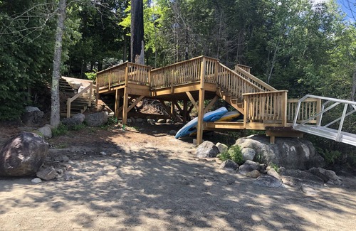Schroon Lake Serenity is perfect for those who opt to rent in a secluded, quiet part of the Adirondacks that’s just a short drive to a local store, town, or highway. Ideal for families, couples, friends' getaways, and work-group / meditative retreats. There's plenty of room for a yoga mat (or more!) on the deck at the house or the floating dock on the lake. Kids will love exploring the natural surroundings - both the stream & the beach.