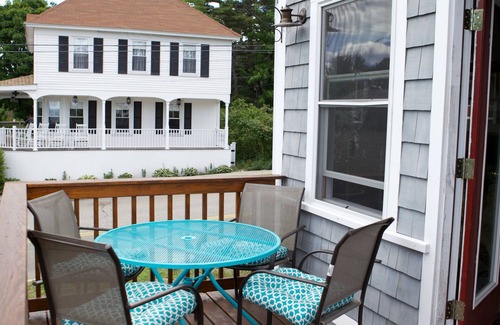 This cottage boasts a private deck that opens up off the living room overlooks the front yard and garden with a peek at the ocean and plenty of sunlight.