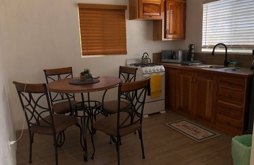 Take is easy at this unique and tranquil hideaway. Tucked in the heart of Treasure Beach. Enjoy a 3-5 mins walk or bicycle to the beach, restaurants like Jack Sprat, Frenchman Reef and Eggy’s. Upon request you can enjoy home cooked authentic Jamaican cuisines by your personal Chef. Tours can be arranged to beautiful YS falls, Pelican Bar, Black river and Appleton rum. Or you can just chill out in this desert Oasis and enjoy the roof top sunsets and Tranquility.