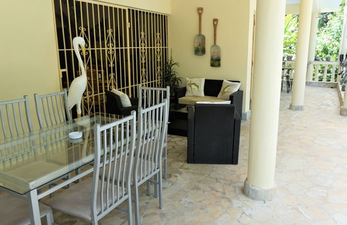Stay at our nicely furnished - painted in Caribbean style - superb decorated and very well maintained private 2 bedroom, 3 bathroom villa which lies right besides a small private bird park. The Villa is located only 5 minutes drive or less than 15 minutes walk to the 3 beaches of Sosua, shopping, night life, bars and restaurants.