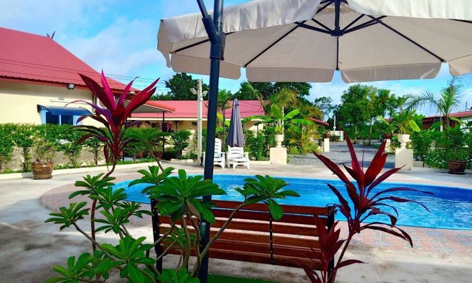 .2 double bedroom Villa with Swimming pool and gardens on 3 sides lots of fruit trees and Areas to shade from the Sun, The Villa has a large living room and Dining area. Also outside seating for Guests. This villa you Can do self-catering . We are here to help with anything you need on your stay. The villa is nice and quiet so you can Rest. No Nabors to bother you or any dogs barking all night. Welcome to come and stay with us. We also do Vip airport pick up and Returns. Car Rental Option as well. The Villa has Access to our Bbq. area and also has a large kitchen and Dining room for private functions. Car Rental or Motorbike rental option as well. The Villa has access to an extra-large kitchen and Dining room. Private Under covered parking as well. The Villa has a quiet Back garden with lots of fruit trees. The Villa has inside and outside Kitchens