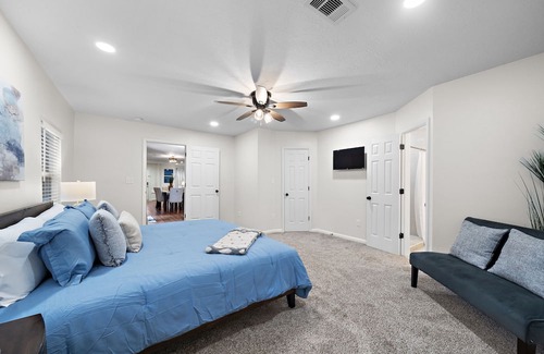 Home Away From home. This private home sleeps 8. It has 4 bedroom 3 bathrooms, newly remolded with hardwood floors granite kitchen counter tops W/D area included. Super Host 5 star reviews in Houston TX with King Size beds in both primary bedrooms, 2 Queens in each secondary bedrooms. Large Private Back Yard to hang out, relax, BBQ and play games High Speed WIFI internet also included Smart tv's in every room.