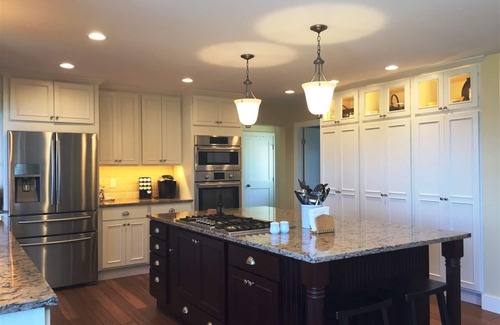 The home features 3 levels of living space. The first floor has an open floor plan with hardwood floors. The kitchen features granite countertops and high end appliances. Enjoy meals in the dining room, breakfast area or on the screened in porch adjacent to the kitchen. The living room is comfortably furnished with large screen TV and gas fireplace. Wake to a beautiful lake view from the first floor Master Bedroom with King sized bed, private spa bath with soaking tub and large walk in closet.