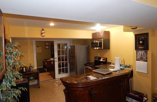 Guests stay on the private lower level of this modern dual-family home with no interaction or shared spaces with the upper level. Enjoy exclusive access through a separate entrance—everything provided is for your use only. Quiet, safe, and beautifully designed for a peaceful stay.