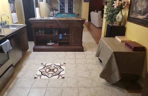 Enjoy a spacious one-bedroom private guest suite on the lower level of a dual home. This retreat features a cozy fireplace, large rec area with pool and ping pong tables, a kitchenette with full-size fridge, electric stove, wine cooler, private gym, and office space. It’s completely private with its own separate entrance—perfect for comfort, fun, and relaxation all in one place.