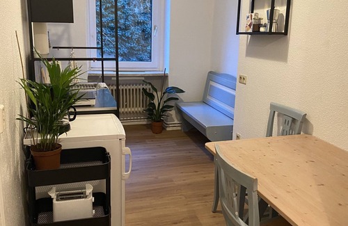 This is our favorite flat in our guesthouse as it offers a large kitchen with plenty of space to socialize. The apartment is very quiet and has a beautiful view on the garden of one of Berlin's typical backyards. All our apartments are bright, cosy, and seek to create a homelike atmosphere. They are equipped with a kitchen that includes hobs, a fridge, a toaster, coffee machines, and an electric kettle along with basic cooking implements. All rooms have en suite bathrooms. WiFi connectivity is available in all areas. We don't have private parking, but there is a free parking zone just a 5 minute walk away (a luxury in the heart of Berlin...).