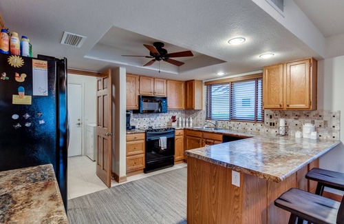 Welcome to our home It's a 2 Bedroom, 2 Bathroom, Sleeps 4, private pool, outdoor covered patio This 1653 square house has private fenced in yard has 2 mature fruit trees (grapefruit, & tangelo oranges, private pool and a covered patio space great for grilling..