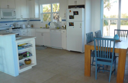 great attention paid to all the small details that make a house charming and comfortable for your vacation. This 3 bedroom, 2 bath, accommodates up to 6 guests comfortably. All furniture, appliances and amenities are brand new and ready for you to enjoy, including a wireless Sonos sound system in the living room, deck, and master bedroom and wifi. The upstairs 3 bedroom also has a sitting area in addition to a queen bed to give you that extra privacy and space. Watch the sunrise and the colors of the ocean change with the tide from your own 660 square foot beach front deck complete with an outdoor sitting area, chaise lounges, and dining space to accommodate up to 6 guests. NO CHILDREN UNDER 6 please. The house is a Key West style beach cottage built on pilings and sitting 10 feet above the ground to maximize the views from all bedrooms, living room and deck. Enjoy birds, sealife, and a 2.5 mile pink sand powdery beach that starts right at the end of the deck. With nothing but sea oats and palm trees to enhance your unobstructed view and access to the serene and private beach. You won’t find a better view or better living than this. About Spanish Wells The Beach House sits on a beautiful white sandy beach with shallow colorful water that is protected by a reef. The summer water temperatures can reach into the high 80's with a light sea breeze. The winter offers low humidity and the water and air temperature can be in the upper 70's with stronger north winds. The private beach location is a short walk to shopping and dining. Spanish Wells is a unique place with a rich history dating back to the 1600's with ties to England. Lobster fishing is the main industry. >It is peaceful place to get away from city life and enjoy island living. A local fast ferry stops each day with connections to Harbour Island and Nassau. Golfcarts and watercraft are available for rent. Fishing trips can be arranged. Getting there is easy with daily air service to North Eleuthera (ELH) from Fort Lauderdale, North Carolina, Atlanta, or Miami airports. The airport is serviced by silver airways- from FLL, American Airlines from Miami, and Delta from Atlanta-with 19 and 30 passenger aircraft. A cab cost about $20 to get from the airport to the island, including the cost of the water taxi.. The water taxi will bring you to St. Georges Cay ( spanish wells-)where the Beach House is located and the community is called Spanish Wells.