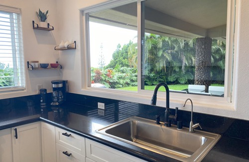A beautiful & private home on 1 acre in Kona Palisades! Our home is in an ideal location at nearly 1,400 ft. elevation to take advantage of cooler temperatures, while being just minutes from the airport, beaches, and Kailua-Kona town (driving minutes, not walkable).