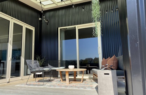 Beautiful natural light streams through the panoramic glass creating a welcoming and relaxing space. The two rooms are on opposite sides of the house. One room is next to the lounge with the option to wake up to the view of the country side or has a bi-fold door for more privacy.