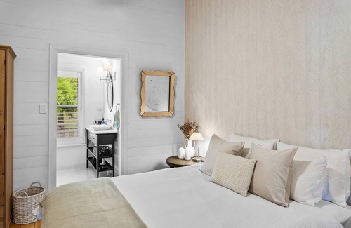 This is a very special rural retreat. The picture perfect white Queenslander is beautifully furnished with linen sofa, hand made rugs, designer kitchen and top quality appliances and original Australian teak floors. The house and decks are beautifully maintained. Bedrooms each have a new en-suite bathroom, electric blankets in winter, ceiling fans and luxury bedding. There is also a separate home office and good internet if you wish to work from home during your stay.