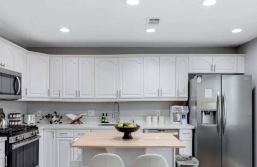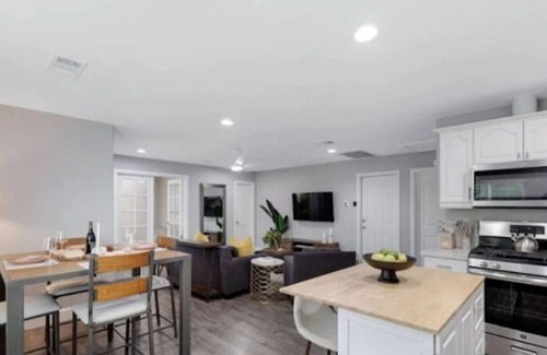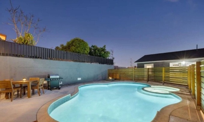 Escape to this charming 3 BR, 2 BA home in the heart of San Diego! Enjoy a king-size adjustable bed, full-size bed, futon, and sofa bed. Plus the added and attached living quarter with it's own kitchen. Yes, two kitchens in one home! Stay comfortable with central AC/heat, resort-style amenities-shared pool, jacuzzi, outdoor lounge, and grill. The driveway fits two tandem cars and electric gate for convenience. Shared laundry, plus a pack and play & high chair for the little ones. Minutes from top attractions, beaches, dining, and airport access. Book now for the perfect San Diego getaway!
