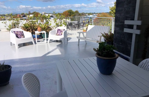 A private, sunny roof top apartment with a large deck area and amazing 360 degree city views right in the centre of Hamilton. Covered parking is available for two vehicles. This is a great place for central city business stays.