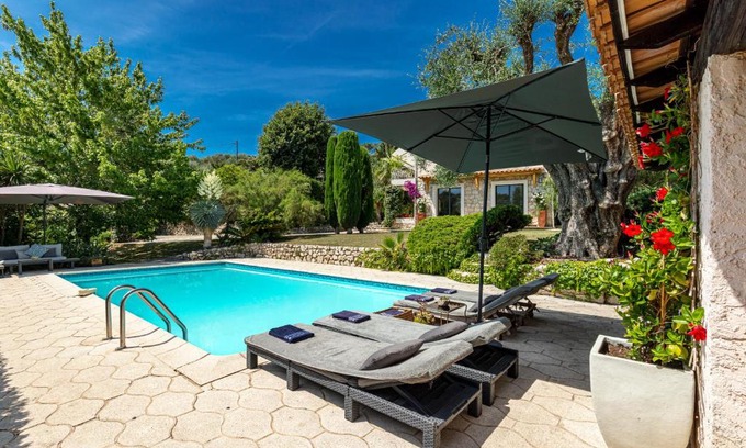Private & comfortable stone villa with pool is located in Roquefort-les-Pins.