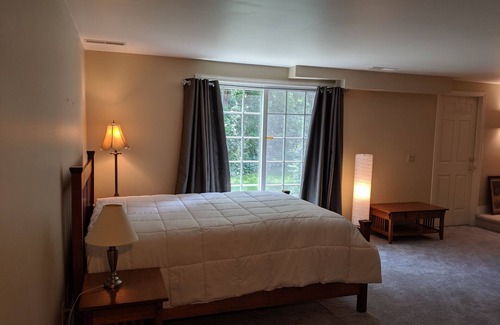 Mound View Gardens is a comfortably furnished guest condo which is attached to owner's home, but very private (no shared walls). We live on one of the highest hills in Dane County, WI with a 15 mile view to the west. Property backs up to the Ice Age Trail and is next to a community garden. This guest condo has a Master bedroom with a Sleep Number Queen Bed and walk-in closet. Main floor den/sunroom with a single memory foam sleeper sofa (most comfortable for a child or smaller adult). Great room has crown molding, a wall mounted Smart TV you can use to access your subscriptions (no cable or local stations). We also have a gas fireplace with remote, hardwood floors, and attached private screened porch. There is an additional twin-sized pull-out ottoman on the main floor that is most comfortable for children or smaller adults. In the exposed lower level there is a large bedroom (1 full bed, 1 queen bed, and leather sofa) with 3/4 bath (shower). Laundry room in unit for light loads. Central AC, lots of windows and light. This location has been perfect for visiting the greater Madison area, and it is located 6" to Epic in Verona. One well trained pet who will be left in a crate whenever alone/unsupervised will be considered for an additional fee; please describe your pet to us prior to booking to obtain approval, thank you. Parking for 2 vehicles is available in the driveway that is shared with the owners atop a long, steep driveway.