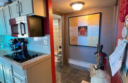 If a peaceful, private environment with a plethora of wild life surprises is what you are looking for this is the place for you! Bunnies and quail can be seen from every window along with visits from cardinals, hawks, roadrunners, lizards and owls (a great horned owl rules the area at night). And you haven’t even left the back yard!