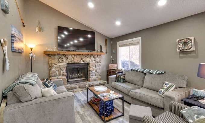 Situated on Cape Hollow Cove, this Sunrise Beach retreat is perfect for a Lake of the Ozarks getaway. Enjoy boating, paddleboarding, and local parks before unwinding with a grilled meal and scenic views. This 2-bedroom, 1-bath home features a private dock, home theater, kayaks, fire pit, full kitchen, and outdoor seating. With Smart TVs, WiFi, and keyless entry, comfort meets adventure. Close to marinas, golf, and hiking, this lakeside escape is an ideal home base!