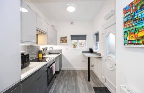 Enjoy easy access to public transport: buses to Manchester are only 100 yards away (£2 fare), and Levenshulme Train Station is a 4-minute walk, with trains reaching the city in under 10 minutes. The property boasts modern furnishings, fresh carpets, and access to a well-equipped kitchen—everything you need for a seamless stay.