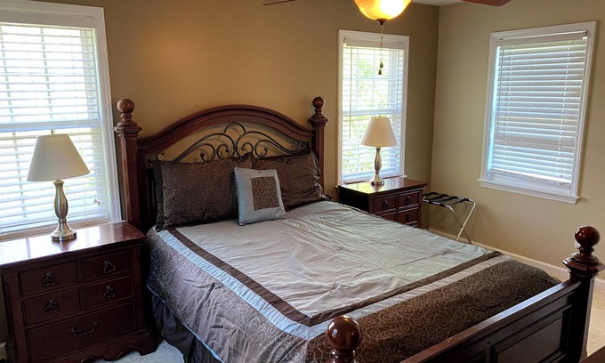 Minutes from Elon University, HWY 40/85, restaurants & shopping, our home is located on a quiet street and neighborhood. You'll have a private entrance to our In-law suite connected to the main home and parking on the driveway. The screened-in porch has seating for 6, private bedrooms, living room, full bath with a kitchenette located within it. Breakfast includes coffee, tea, and snacks. Our home is good for couples, solo adventurers, business travelers and families visiting Elon University. We are long time hosts on another platform, with a 4.9 out of 5.0 rating from 110+ guests.
