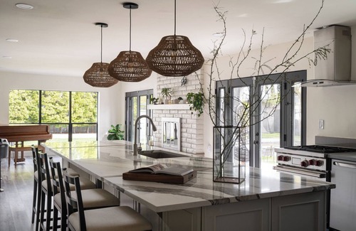 Perfect for hanging out in large groups with total privacy thanks to the walled gardens, our home has tons of beautiful natural light, a peaceful neighborhood, a chefs kitchen, and more. It truly feels like a private estate with a unique private front garden with over 40 varieties of flowers, trees and plants.