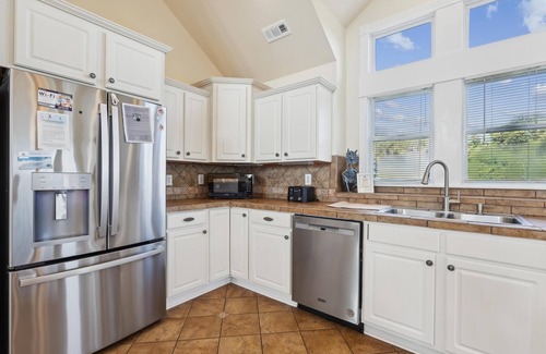 "Treasured Times" also offers an outside shower, park grills, a gas grill, and a picnic table, 11 TVs, 5 DVDs, 2 dishwashers, 2 refrigerators, a gas fireplace, games, a crockpot, WiFi, a volleyball court, an elevator, a keyless entry lock, open and covered decks, a pool table, a private pool, and more!