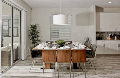 Step inside and enjoy the bright open layout—perfect for gathering after theme park adventures. The kitchen comes fully stocked with modern appliances and plenty of seating for family meals.