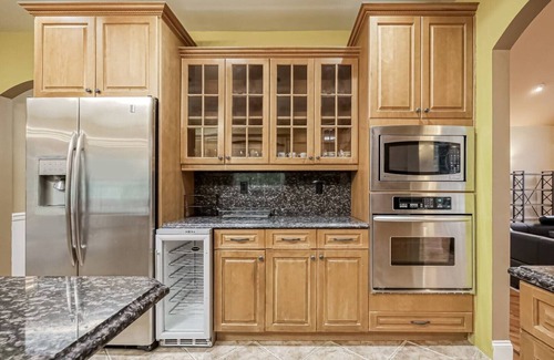 Main Floor: Boasts an Elegant 2 Story Chandler lit Foyer; Fully stocked Eat in Kitchen; Large Separate Dining room With seating for 8 (if more space is needed we can add leaf extensions upon request before arrival); Huge High ceiling Family great room, Elegant Billiard Room (to be completed); Master bedroom With king size bed; Full main floor Bathroom.