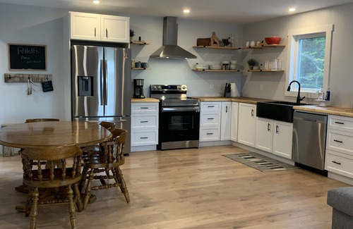 This clean, fresh private home in the woods. Off the deck enjoy panoramic views of new harbour bay and the surrounding mountains. All new appliances, comfortable mattresses and any other comforts you would wish for in your home away from home.