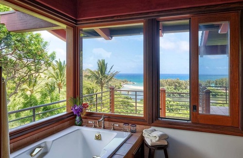 Private home on 12 lush acres, ocean views, path to beach, two bedroom main house! is located in Kilauea. Private home on 12 lush acres, ocean views, path to beach, two bedroom main house! provides accommodation, featuring TV, View, Wellness Facilities, among other amenities. This House features TV, View, Wellness Facilities, to make your stay a comfortable one.