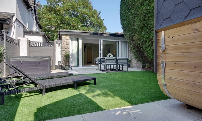 The Studio is located 740 metres from Bournemouth beach and 1.5 miles from Bournemouth Square. It sleeps 2 adults and 2 children and has a private hot tub and sauna within a private garden. It also has access to a games room with pool table and arcade machine and communal play area with swings, slide and trampoline.