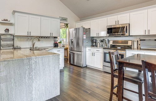 A fireplace, air conditioning, and a ceiling fan are featured at this 4-bedroom, 2.5-bathroom rental. Prepare a home-cooked meal in the kitchen, complete with an oven, a stovetop, and a dishwasher, as well as an ice maker, a microwave, and cookware.