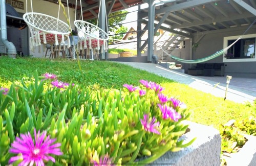 This is a private house, 2000 sqm safe backyard and animal friendly. Wellness in all year-finsauna, jacuzzi. Big Panorama terrrace for the Lake Balaton and the Gigantic Völgyhíd Bridge. 2 bedrooms and autenthic wine cellar. In the summer time outside pool.