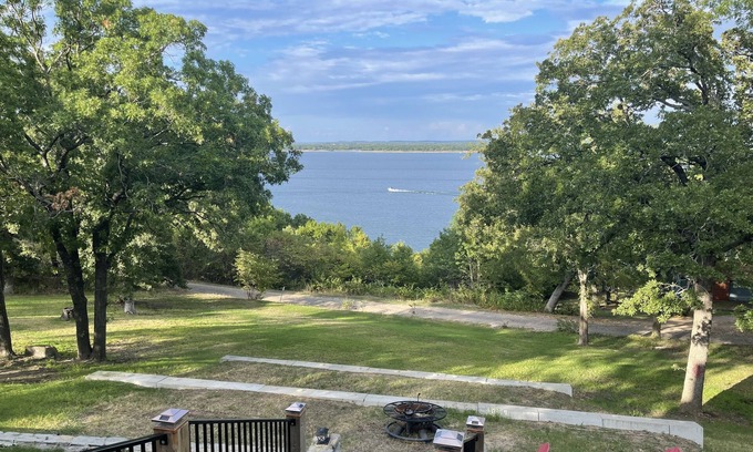 Our home sits on a peninsula with privacy and an amazing view of Lake Texoma! The house was remodeled this year and is patiently awaiting you and your family’s arrival! Large yard with multiple decks providing several different breathtaking views of Lake Texoma with sunrises in the morning and sunsets in the afternoon. Enjoy your favorite movie or sporting events from the large covered patio, game room, or in the living room overlooking the lake.