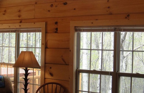 Drive into Sky Mountain Farm and up the 1/3 mile driveway to our upscale secluded log cabin with hot tub and fireplace. See deer and an occasional black bear on the way. Smell the natural wood when entering the cabin. Sit in the family room, master bedroom or cedar deck and view the grassy hollow of green grass and flowing stream in season and hiking trails on 16 acres. Enjoy the hot tub under the stars and moonlight. Plenty of hiking and walking Sky Mountain Farm property. Only two miles north of Cacapon State Park (Cacapon Resort).