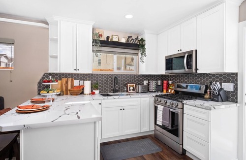This home has 450 sq ft of interior space and 450 sq ft of rooftop space, every inch has been maximized for comfort, luxury and thoughtful amenities. This mini-castle is private and detached with its gated front entrance and gated driveway. Everything here is for your enjoyment as there are no shared spaces for this home. The house was designed and built around a king-sized bed and boasts a smart 65” tv in the bedroom and a smart 55” in the living room. The bedroom features a king-sized memory gel foam bed and a spacious walk-in closet for you to un-pack and feel at home. The bedroom also has a mini-split heating and cooling unit. The bathroom features dual rainfall shower heads and two wall-niches, as well as a towel heater and LED bathroom fan. The bedroom and living room have accent LED lighting that is great for movie nights or a comfortable ambiance.