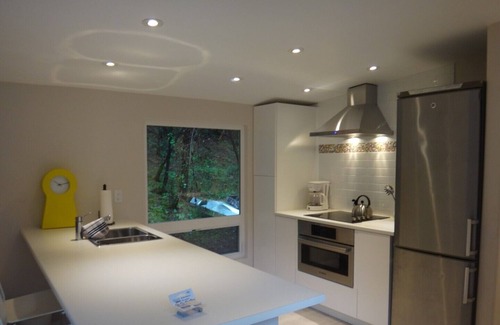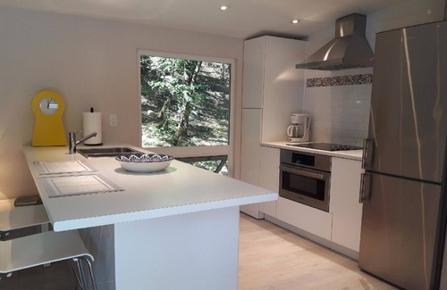 The Escape is a luxury private house on the 11 acre Xanadu Estate. The Escape is a beautiful, unique place. You have warm underfloor heating, a luxury queen bedroom, a gourmet kitchen with Bosch appliances, a dishwasher, and a spa bathroom.